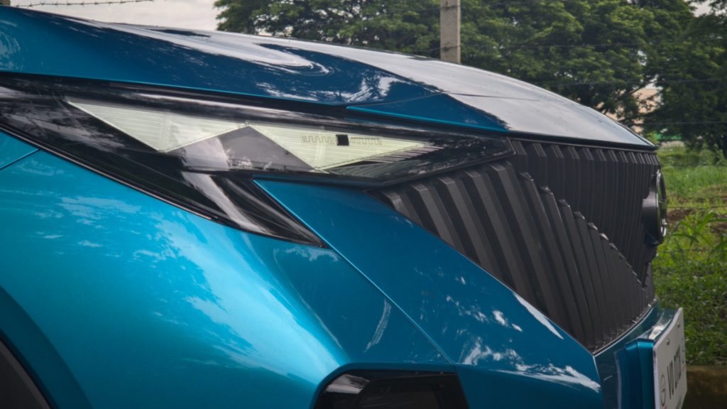 امزوم شاید به اندازه امکو فوق العاده عجیب و غریب نباشد، اما همچنان ظاهری خاص و مهیج دارد. جلوپنجره بزرگ عمودی و چراغهای LED با طرح دندان کوسه، نمای جلوی خودرو را تحت سلطه خود درآوردهاند. یک بریدگی مثلثیشکل در جلوپنجره به باریکتر نشان دادن آن کمک میکند، در حالی که نوارهای نارنجی رنگ در سمت راننده، با نشان “Em-Power” به خوبی ترکیب شدهاند. شیارهای مثلثیشکل هوا را به سمت گلگیر جلو هدایت میکنند، در حالی که بالچههای کوچک جلو -که منحصراً برای کیت R-Style هستند- ظاهری فوقالعاده تهاجمی به امزوم میبخشند، حتی اگر عملکرد آیرودینامیکی واقعی نداشته باشند.